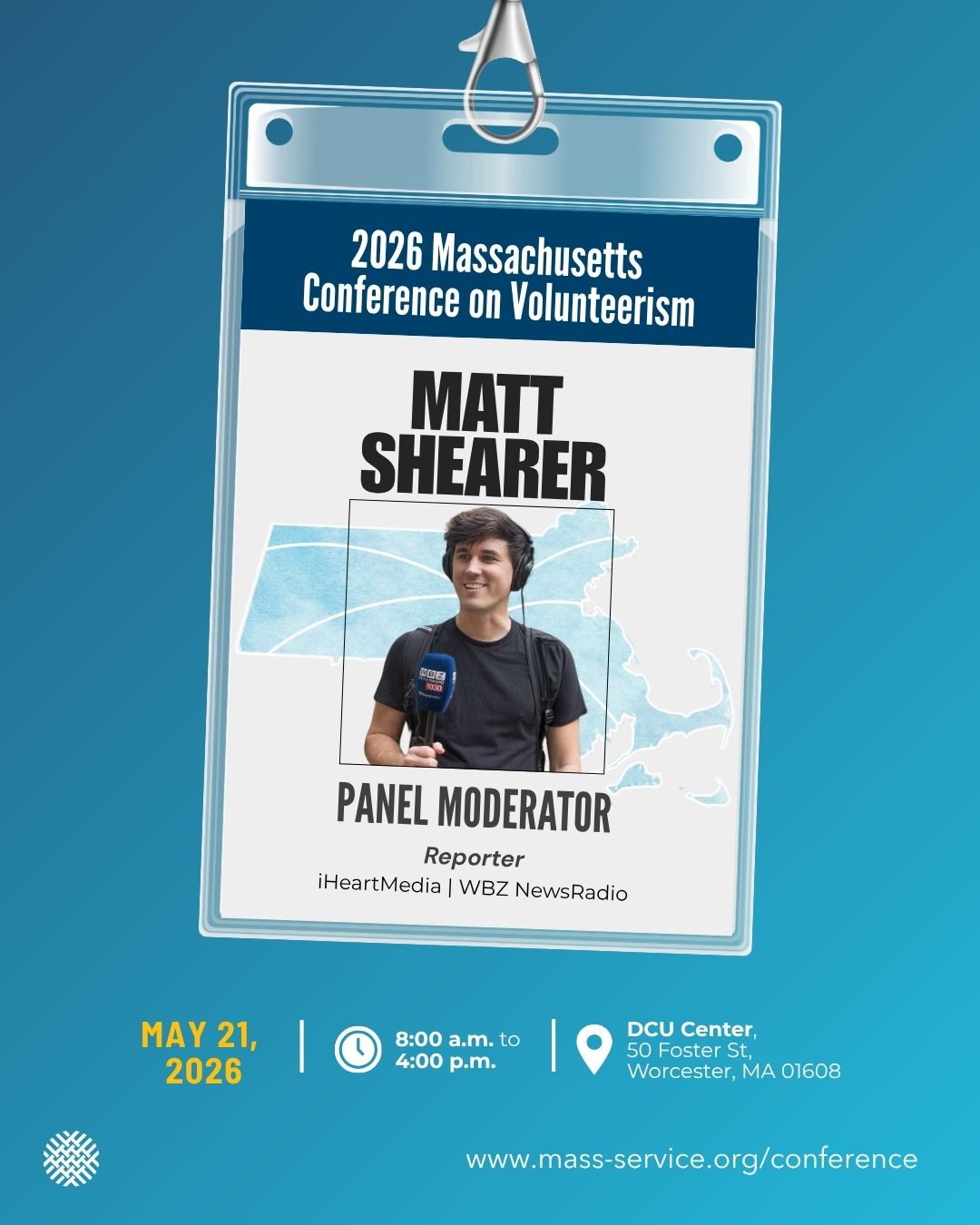 We’re thrilled to announce that WBZ NewsRadio’s Matt Shearer (@reportermatt) will serve as the Panel Moderator for the 2026 Massachusetts Conference on Volunteerism! Known for his dynamic storytelling, community-centered reporting, and ability to spotlight the people and moments that often go unnoticed, Matt brings energy, curiosity, and a genuine connection to communities across the Commonwealth.